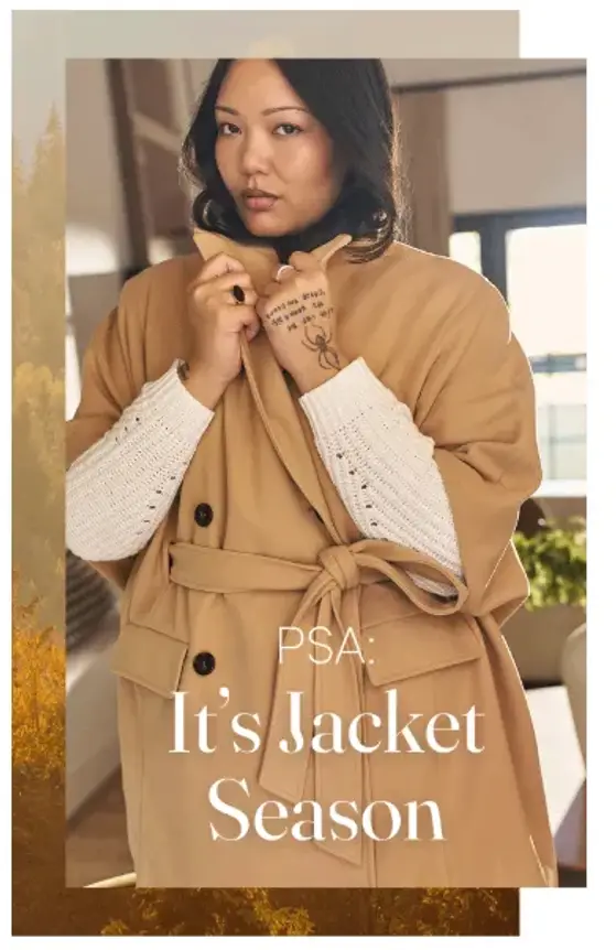 We've got you covered. New, right this minute: jackets in every silhouette. Beautiful fabrics, every level of warmth you could want, guaranteed. Stop by and shop for jackets in store today!